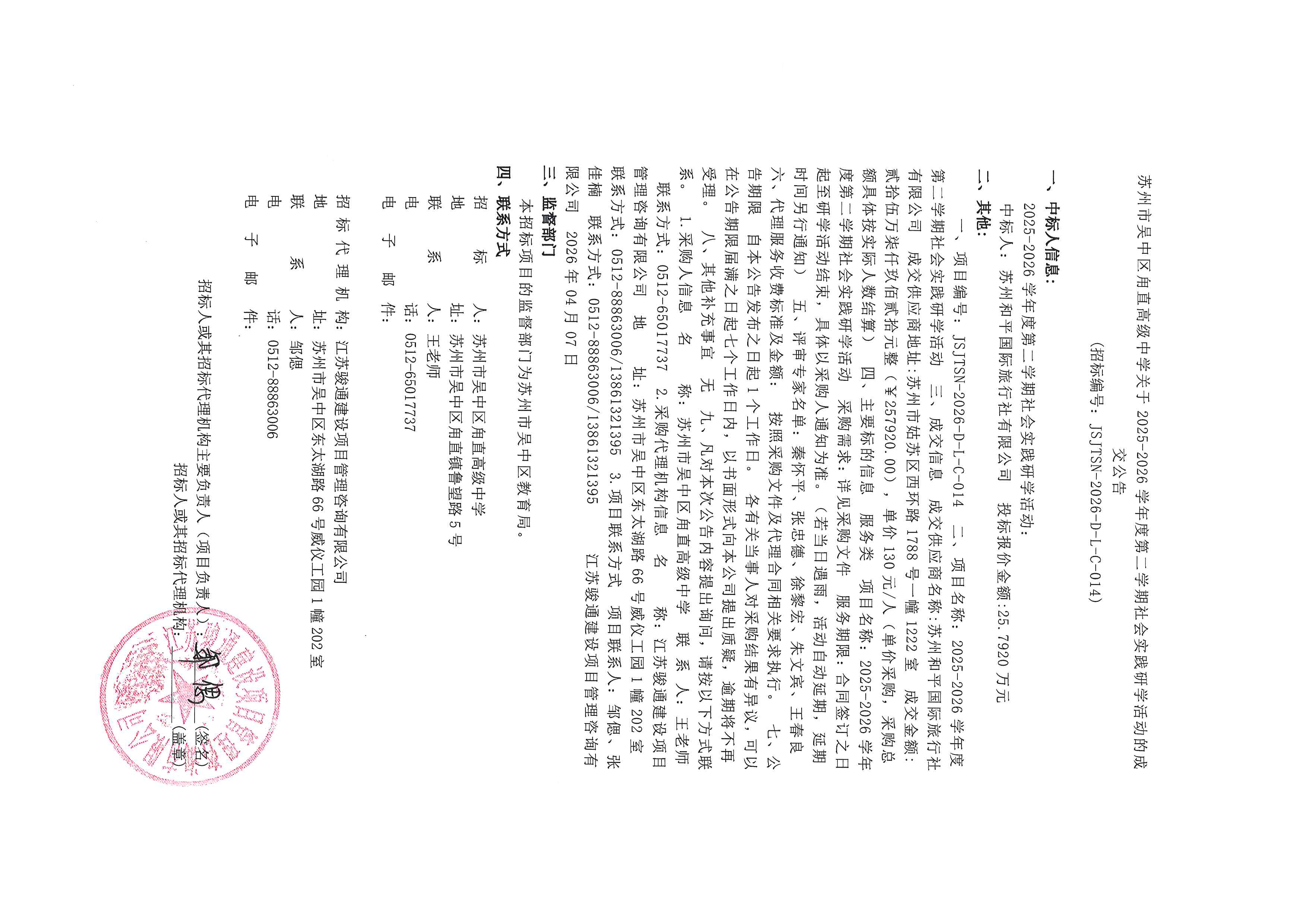 2025-2026学年度第二学期社会实践研学活动的成交公告